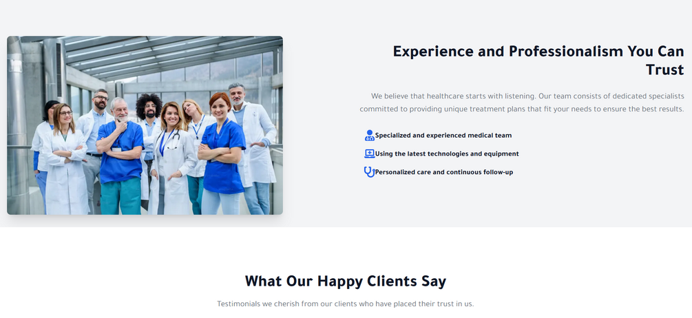 * Clinics & Doctors who need a professional online presence that reflects the quality of their services.