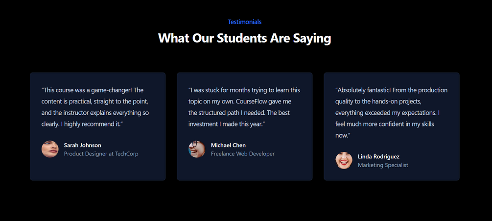CourseFlow is the solution. It's a stunning, pre-built landing page template built with Next.js & Tailwind CSS that gives you the modern, premium look you need to build trust and sell your course effectively.